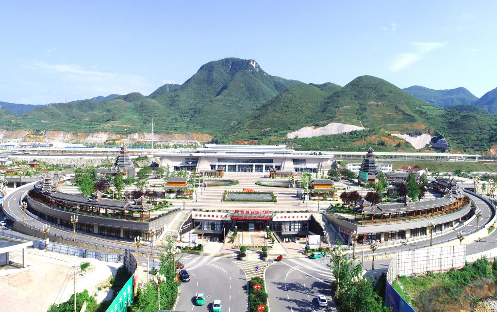 沪昆高铁凯里南站是凯里经济开发区精心打造的一个民族文化展示平台和窗口,站房犹如一座雄伟壮观的风雨桥,彩色音乐喷泉如同一幅五彩斑斓、如梦如幻的水景画。站前广场左右对应的鼓楼、风雨长廊和天井,通体全是本质结构,凿榫打眼,穿梁接拱,立柱连枋,不用一颗铁钉,全用榫铆连接,结构牢固,铆接缜密,造型美观,工艺精湛,充分展现了当地苗、侗民族建筑文化的独特魅力,成为了凯里乃至黔东南的“客厅”,成为国内最富特色、最为美丽的高铁站,每天都吸引数万名旅客和市民驻足观赏。