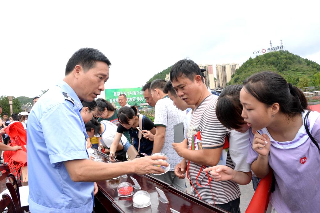 演出结束后,该区各部门分成8个组,分别在凯里高铁南站站前广场、白午生态移民城社区、凯里学院和黔东南民族职业技术学院门口等人流密集场所开展设点宣传,悬挂宣传标语,发放宣传资料,讲解毒品知识,发送印制有禁毒知识的宣传作业本和宣传围裙。在凯里高铁南站站前广场宣传点,还展出了20余种毒品样品,该区禁毒办人员现场为群众、旅客讲解毒品的种类、特性、危害,以及毒贩引诱吸毒的伎俩和自我抵制毒品的方法,提高了活动的吸引力和教育覆盖面。