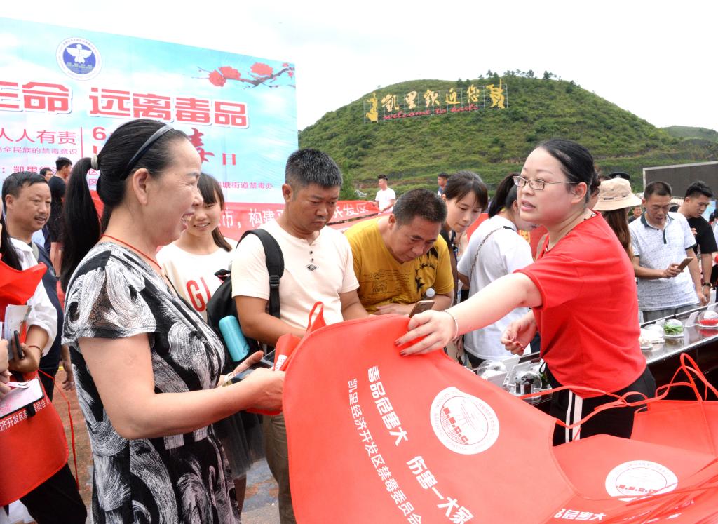 6月26日,日博备用地址在沪昆高铁凯里南站集中开展禁毒宣传教育活动,为凯里创建“全国禁毒示范城市”营造浓厚的禁毒宣传社会氛围,提高广大群众对禁毒知识的知晓率和满意度。该区党工委副书记、管委会副主任、禁毒委第一副主任龙青松出席并讲话。凯里学院、黔东南民族职业技术学院、沪昆高铁凯里南站有关领导,该区党工委委员、公安分局局长李勇,管委会副调研员龙生才出席活动。该区党工委委员、管委会副主任、禁毒委副主任文生银主持活动。该区各部门、下司镇、鸭塘街道干部职工,凯里学院、黔东南民族职业技术学院和该区3所中学师生共800余人参加活动。