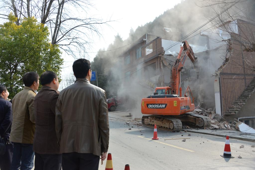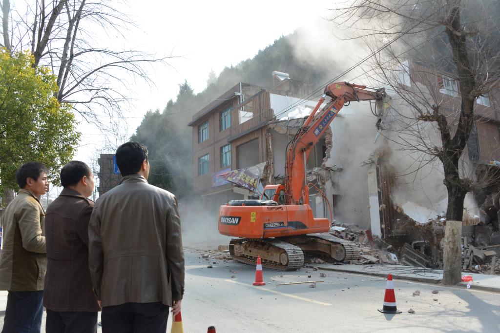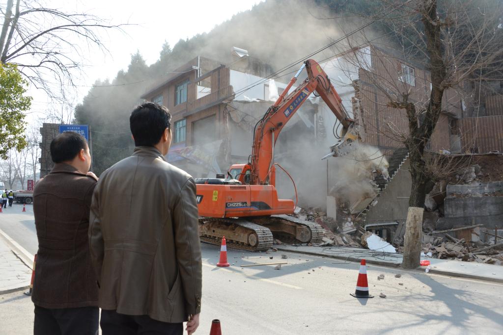 为迎接全省2018年旅游产业发展大会的召开,凯里经济开发区未雨绸缪,春节刚过,就在下司古镇核心区规划范围内迅速掀起房屋拆迁热潮,为道路、桥梁和各种景观建设让出空间,推进下司古镇旅游升级,打造5A级景区,努力争取成为2018年全省旅游产业发展大会主会场。图为下司新大桥桥头320国道边拆房场景。(凯里经济开发区外宣办 蒋建民)
