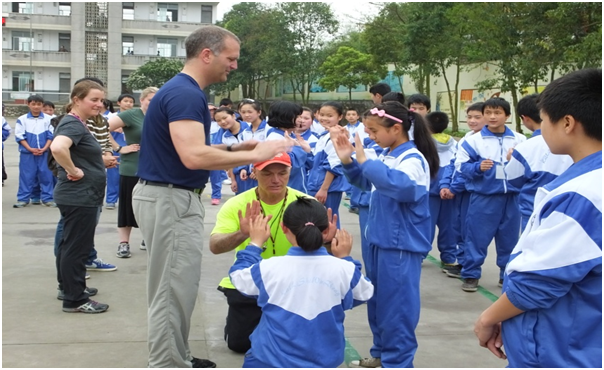 (美国蒙大拿大学和麦克?曼斯菲尔德中心专家与鸭塘中学学生开展游戏互动)