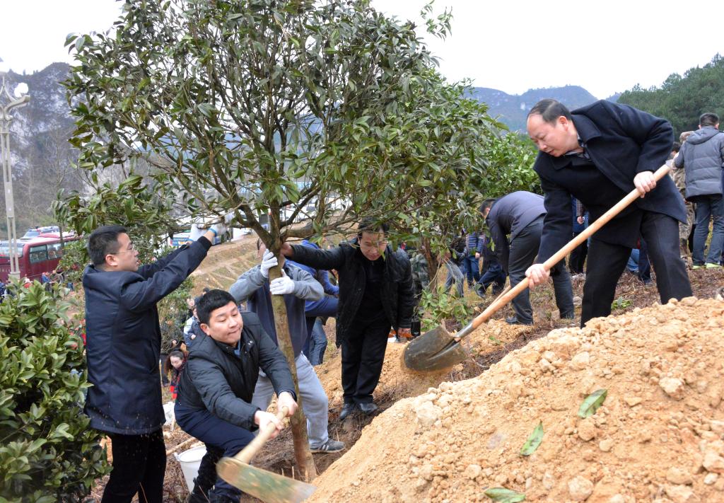 天气虽然寒冷,但参加植树的领导和干部职工个个干劲十足。在规划的植树区域内,三、四个人一组拿起锄头、铁锹挖坑、填土,扶正树苗,为树苗培土、压实、浇水,大家相互配合,干劲十足,气氛热烈。每一道工序,大家都忙得不亦乐乎,做得一丝不苟。领导们一边植树一边同大家交谈,从气候变化的影响说到植树造林的效益,再说到开发区生态环境的改善,现场气氛十分活跃。经过1个多小时的劳动,几十棵树苗全部栽植完毕。此次栽植的树苗全都是戴冠的桂花树,把植树山坡装点得绿意盎然。