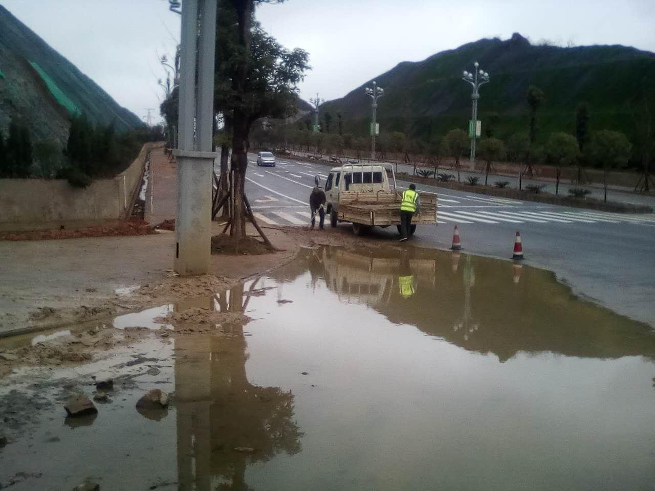 路面地势低,改造过程中没有设置雨篦子,造成凯三线交叉处、经纬汽车城路面发生大面积积水,该两路段连接三环路,是车辆进出市区的主要通道,市政工人将积水引退,但路面沉积的淤泥有10厘米厚,影响车辆通行,且存在安全隐患。由于淤泥过多,市政工人在清理现场有序地拉警戒线、摆放安全锥、放置施工挡板。经过市政工人一天的努力,清理淤泥近10立方米,恢复了主车道通行。并将地势低,可能会积水的路段的井盖,雨篦子全部打开,方便排水,能更好地维护辖区的环境。(城管局 王艳琼)